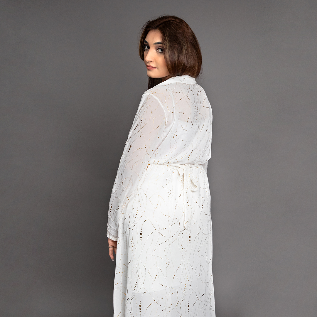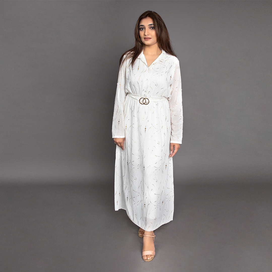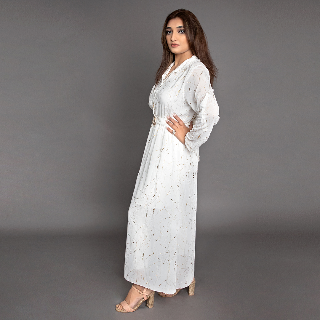 Women Full Sleeve Fancy Chiffon loose fitted white Top
